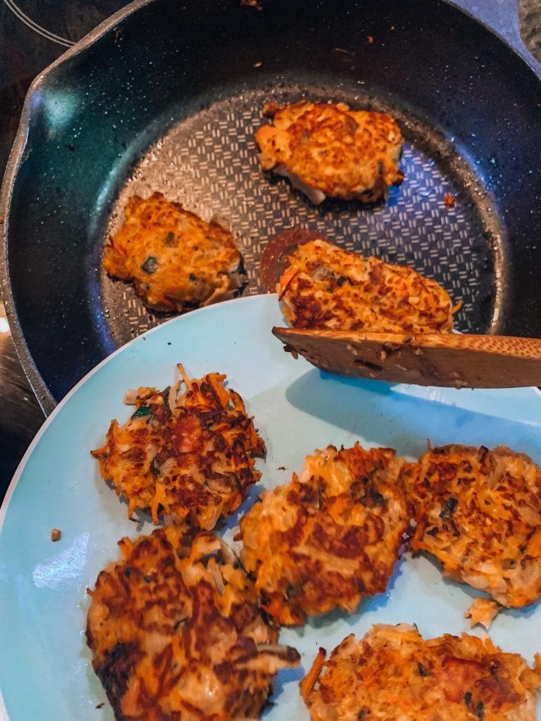 8. Finalmente, pondremos un poquito de aceite en una sartén y haremos las tortitas a fuego bajo – medio.