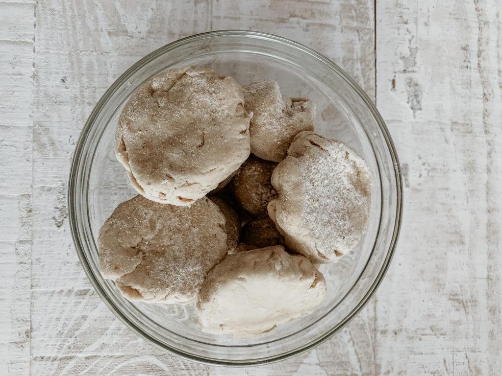 4. Pasado el tiempo de reposo, dividiremos la masa en 6 partes y daremos forma de bola a cada parte.