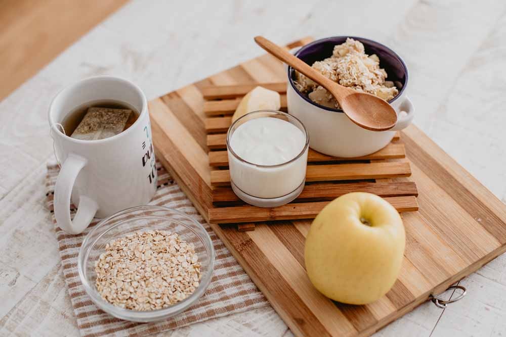 • 1 Tazón de avena con manzana y yogur. Infusión o café