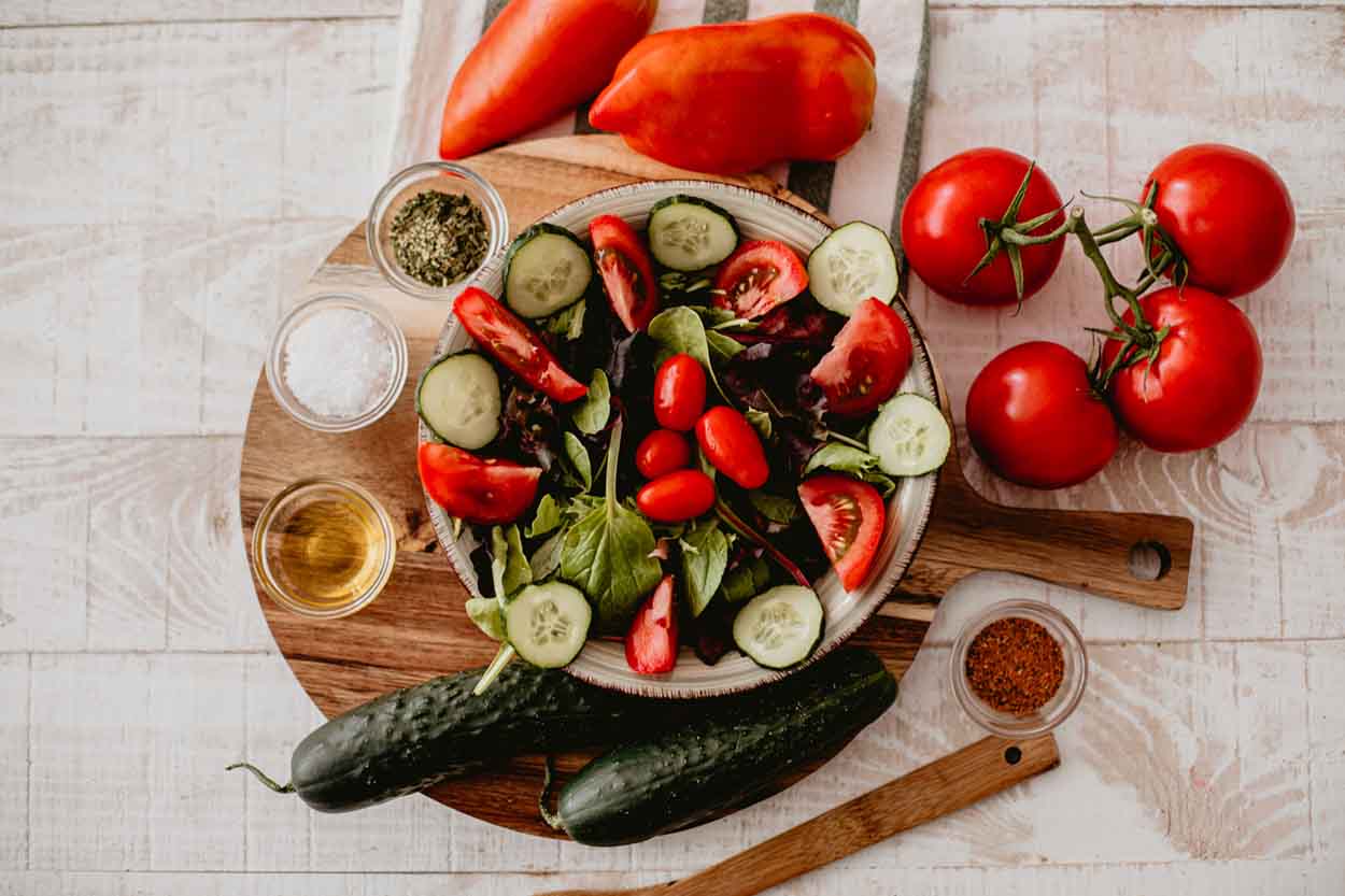 ENSALADA DE BROTES VERDES, PEPINO Y TOMATE