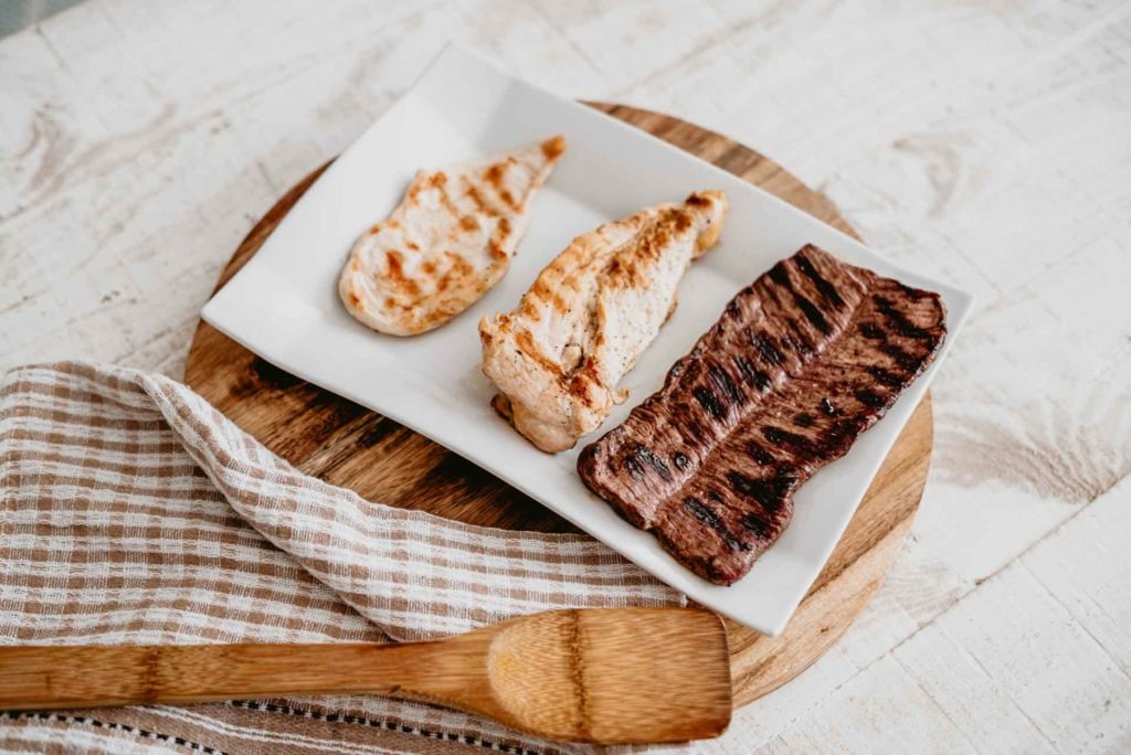 Cogéis el filete de carne que hayáis escogido.