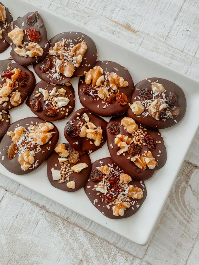 ¡Hoy os traigo una nueva receta súper saludable y muy fácil de preparar! Solo necesitáis chocolate negro y frutos secos, aunque también le podríais poner frutos rojos, semillas… ¡al gusto!