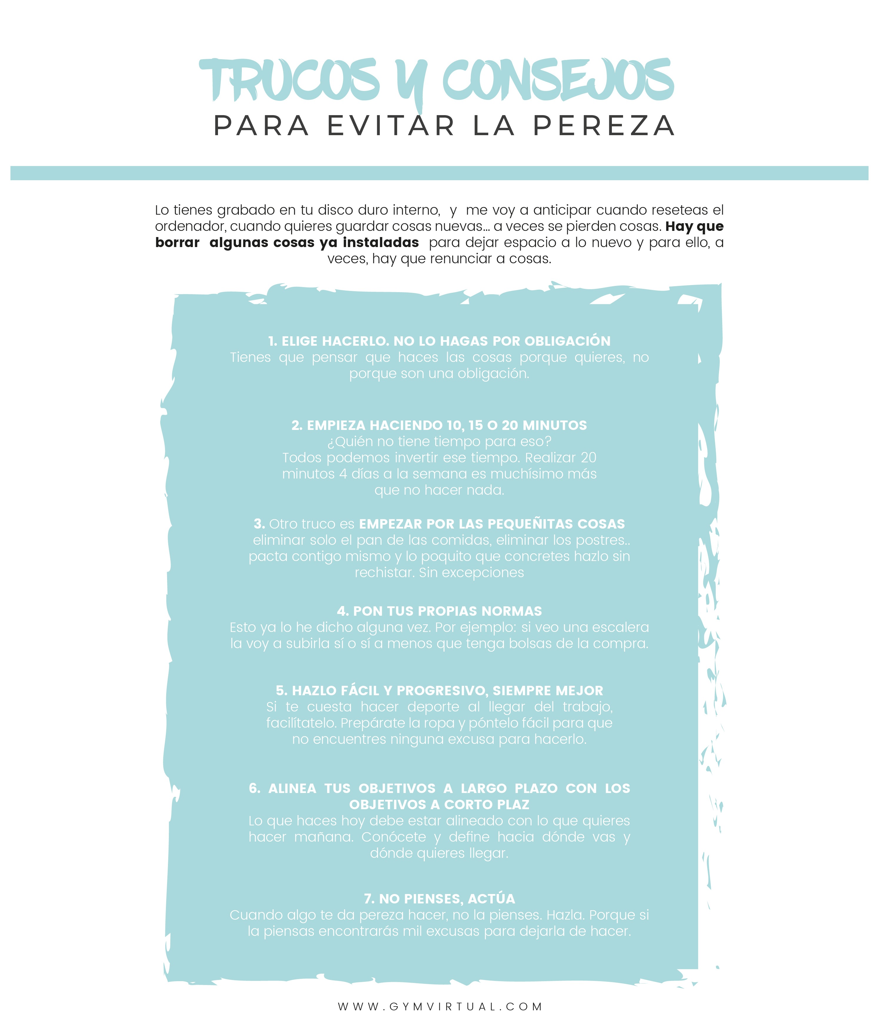 Hola a todos. ¿Qué tal? Hoy os traigo un nuevo post con trucos y consejos para evitar la pereza. ¿No has pensado que lo que te mantiene atado inmóvil son los hábitos que ya tienes adquiridos ahora? Piensa que puedes cambiar lo que te propongas. Si quieres puedes, si te enfocas, si te comprometes.. solo tienes que decidir hacer el cambio, dar el primer paso.